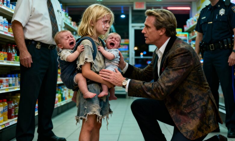 At that moment, the millionaire’s heart tightened. He saw not a thief, but a child abandoned by the world. A silence fell across the store as he slowly stood and took out his wallet. “I’ll pay for everything she needs,” he told the manager. Then, turning to the officer, he added, “There’s no crime here tonight—just a cry for help.”