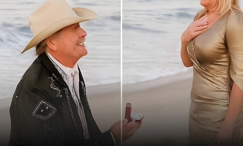 Alan Jackson, whose career boasts over 75 million records sold and a trophy case brimming with Grammys and CMAs, has always been more than a country music titan – he’s a devoted husband and father whose life offstage is as inspiring as his music. His marriage to Denise, which began in 1979, has long been a beacon of hope in the music industry, weathering the storms of fame, endless tours, and personal trials. On that quiet beach, with only their closest family watching, Jackson chose a moment of pure intimacy to recreate the proposal that started it all, not to relive the past but to carve out a new milestone in their epic love story. Sources close to the couple reveal that Jackson took Denise’s hand, gazed into her eyes, and spoke from the heart: “We’ve been through everything together, and if I had to do it all over, I’d choose you every single time.” Those words, raw and unscripted, brought Denise – his partner since their Nashville beginnings – to tears, as their daughters and grandchildren stood by, witnessing a moment that felt like a scene from one of Jackson’s own ballads.