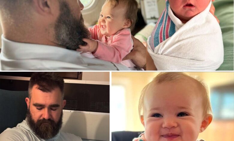 “Jason Kelce used to crush defensive lines. Now he’s getting tackled by a baby — and smiling about it!”