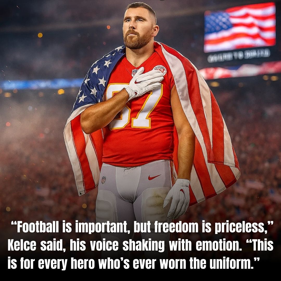 “Football is important, but freedom is priceless,” Kelce said, his voice shaking with emotion. “This is for every hero who’s ever worn the uniform.”