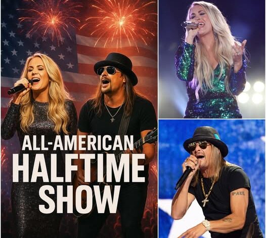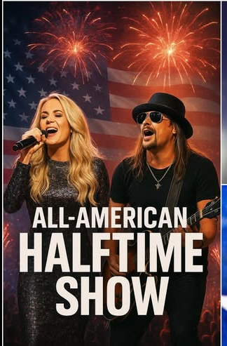 In a move that’s already shaking both Nashville and Hollywood, country superstar Carrie Underwood and rock legend Kid Rock are teaming up for the “All-American Halftime Show,” a bold, independent, and unapologetically patriotic live performance presented by Turning Point USA.