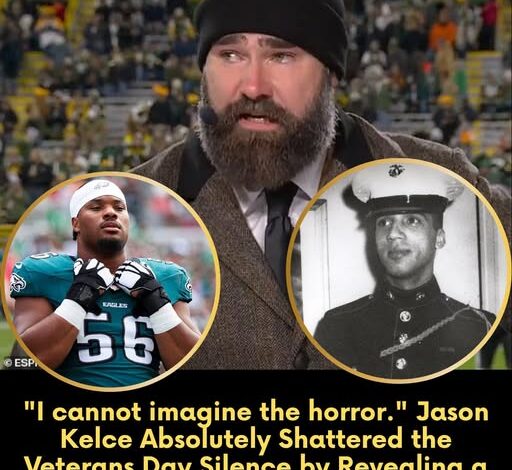 The National Football League is often defined by fierce competition, multi-million dollar contracts, and celebrity status. But sometimes, in a rare, profound moment, the sports world stops, drops its bravado, and bows its head to something infinitely greater: sacrifice. This Veterans Day, that moment belonged to Jason Kelce. The Eagles legend, known for his gritty play and raw, authentic personality, shattered the usual silence surrounding the holiday with a tribute so deeply emotional, it left his co-hosts and millions of viewers watching ESPN in tears.