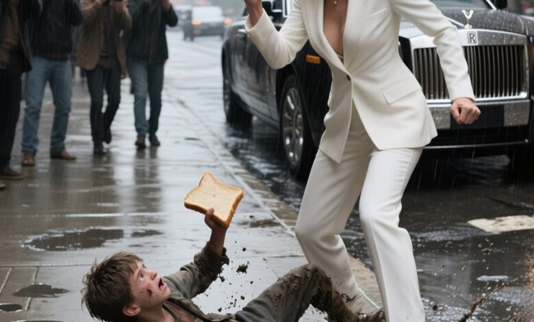 The sidewalks were crowded with umbrellas and rushing footsteps. She was just a few steps from the glass doors when a young boy, about nine years old, ran by holding a greasy paper bag of leftover food. His clothes were torn, soaked, and stained. His hair clung to his forehead. His eyes were tired—too tired for a child.