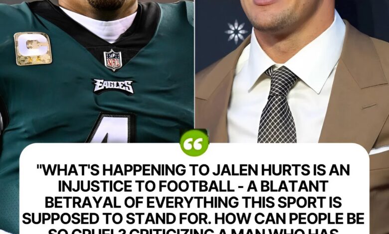 “What is happening to Jalen Hurts is an injustice to the game of football,” Gronkowski declared with unmistakable conviction. His words sent shockwaves through NFL media, ignited a fierce online debate, and reportedly infuriated the Philadelphia Eagles organization.