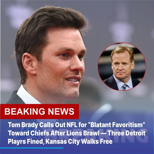 The NFL world is in meltdown mode after seven-time Super Bowl champion Tom Brady unleashed a fiery tirade against the league — accusing officials of “blatant favoritism” toward the Kansas City Chiefs. The outburst came just days after a chaotic postgame brawl between the Detroit Lions and the Chiefs, an incident that left players and fans fuming. The NFL announced hefty fines for three Lions defenders… but not a single player from Kansas City faced consequences.