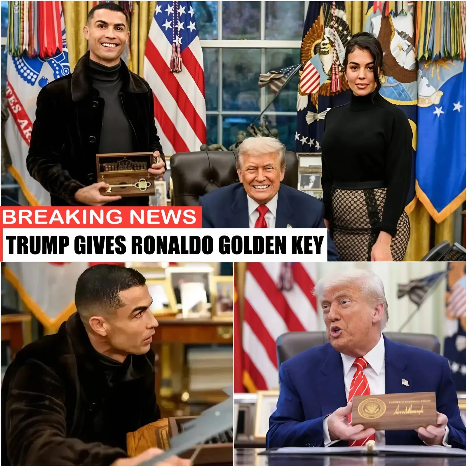 🚨JUST NOW: Donald Trump marked Cristiano Ronaldo’s trip to the Oval Office this week by gifting him a golden key to the White House🔑