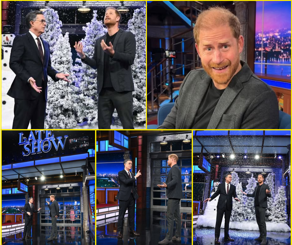 When Prince Harry walked onto the set of The Late Show with Stephen Colbert on Wednesday night, most viewers expected the usual mix of friendly conversation, gentle teasing, and the familiar warmth that often characterizes his US media appearances. What they did not expect, however, was for the Duke of Sussex to dive head-first into one of Colbert’s most lighthearted segments — a playful review of intentionally over-the-top, made-for-TV Christmas movies.