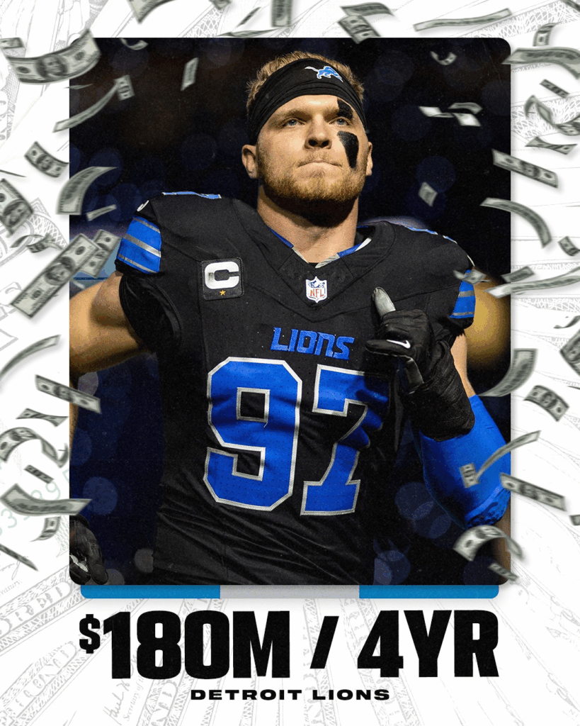 Detroit Lions đã chính thức ký hợp đồng gia hạn 4 năm trị giá kỷ lục 180 triệu đô la với Aidan Hutchinson, trong đó có 141 triệu đô la đảm bảo, biến anh thành một trong những hậu vệ được trả lương cao nhất lịch sử NFL.