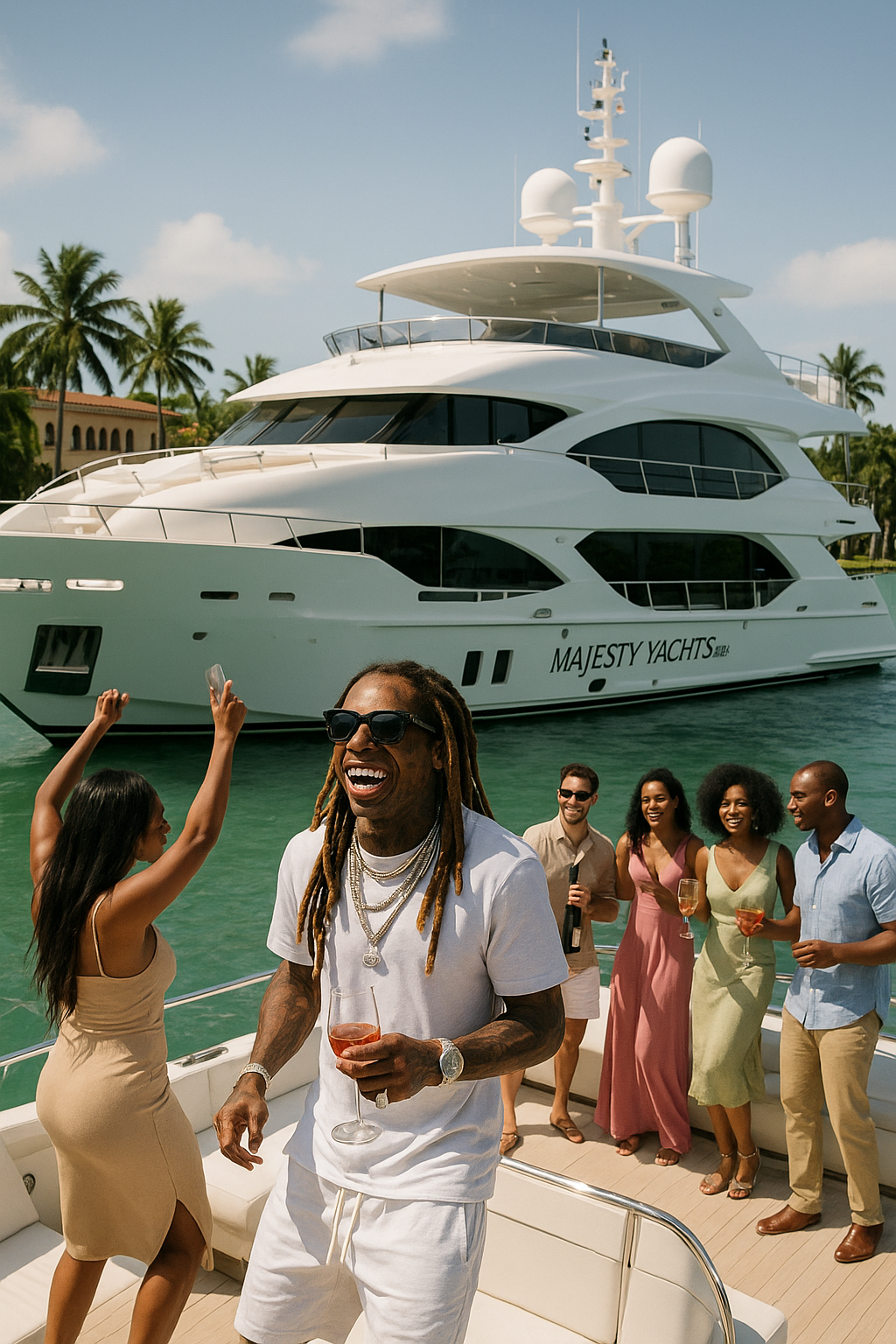 In a move that stunned both fans and industry insiders, Lil Wayne reportedly spent his own fortune to purchase a Majesty Yachts USA superyacht, using it not for business or status — but to host an epic celebration for his closest circle at Star Island, Miami’s most exclusive celebrity enclave.