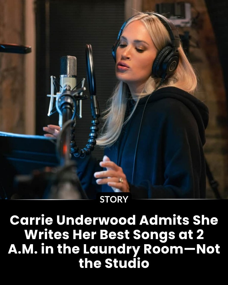 Carrie Underwood surprised many when she revealed that the place where she writes her best songs is not the famous studios in Nashville as many people think, but the laundry room in her quiet house. She shared that she often writes the most profound and honest songs at 2am, in a simple space with the sound of the washing machine spinning. That is the moment when the mother and artist in her find perfect harmony, creating works that fans call the most honest, can create a “midnight EP” with a lot of nuances.