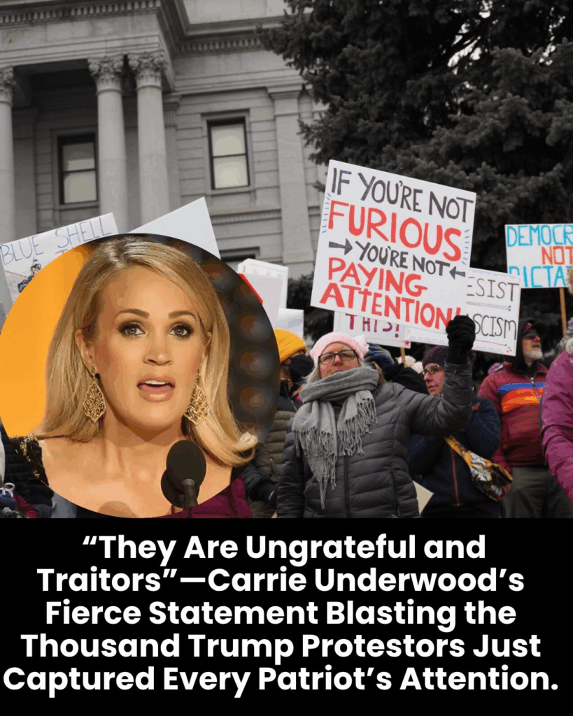 Carrie Underwood, one of the country music’s leading voices, who is famously private about political and social issues, took the nation by storm when she first spoke out about protesters supporting former President Donald Trump. Her remarks were not only a personal statement but also sparked a profound national debate about loyalty, freedom, and the true meaning of love for country.