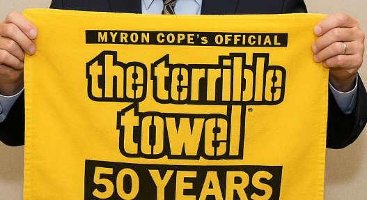 The Terrible Towel was first introduced in 1975 by broadcaster Myron Cope as a fun way to energize fans during a playoff run. What began as a gimmick quickly transformed into a cultural phenomenon. For five decades, the sea of gold waving across stadiums has embodied not just team spirit, but the identity of Pittsburgh itself: tough, proud, unyielding.