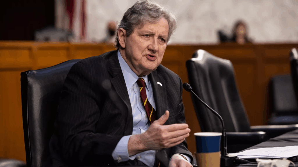 The already tense hearing room suddenly exploded as Senator John Kennedy stood up, his hand slamming down on the wooden table, startling the entire row of senators. The sound rang out like a bell signaling that the already heated debate was about to flare up even more.