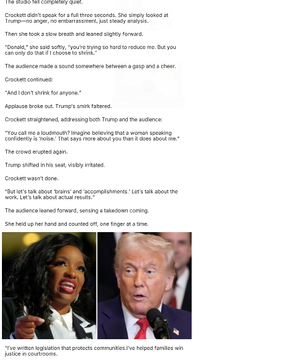 zz . Trump’s On-Air Jab at Jasmine Crockett Explodes When She Spins It Into Applause He Didn’t See Coming
