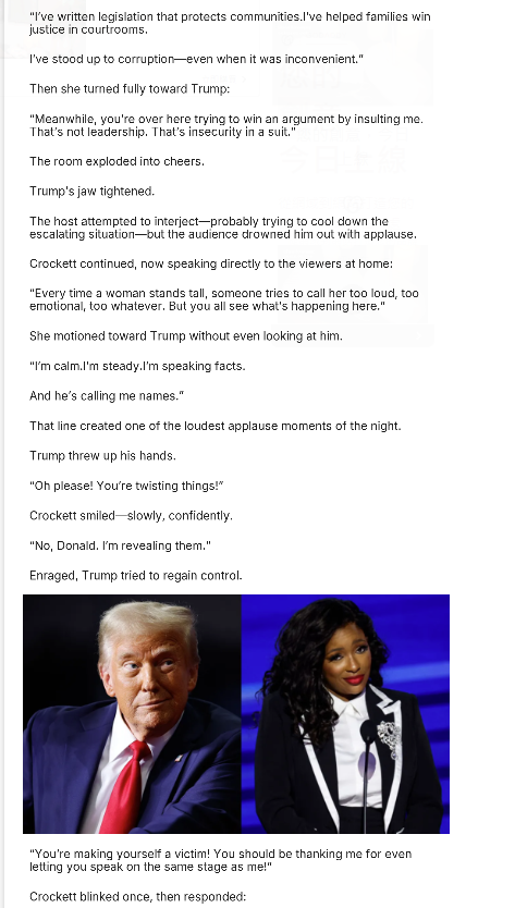 Crockett-known for her razor-sharp reasoning, steady composure, and unmatched stage presence didn’t shout back. She didn’t retreat. She didn’t even frown.